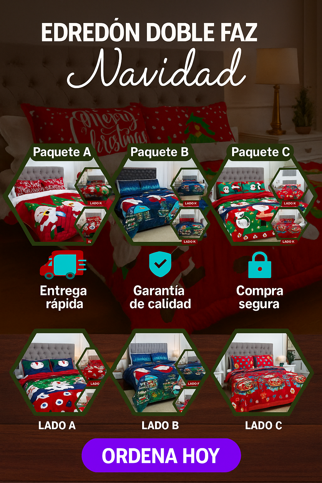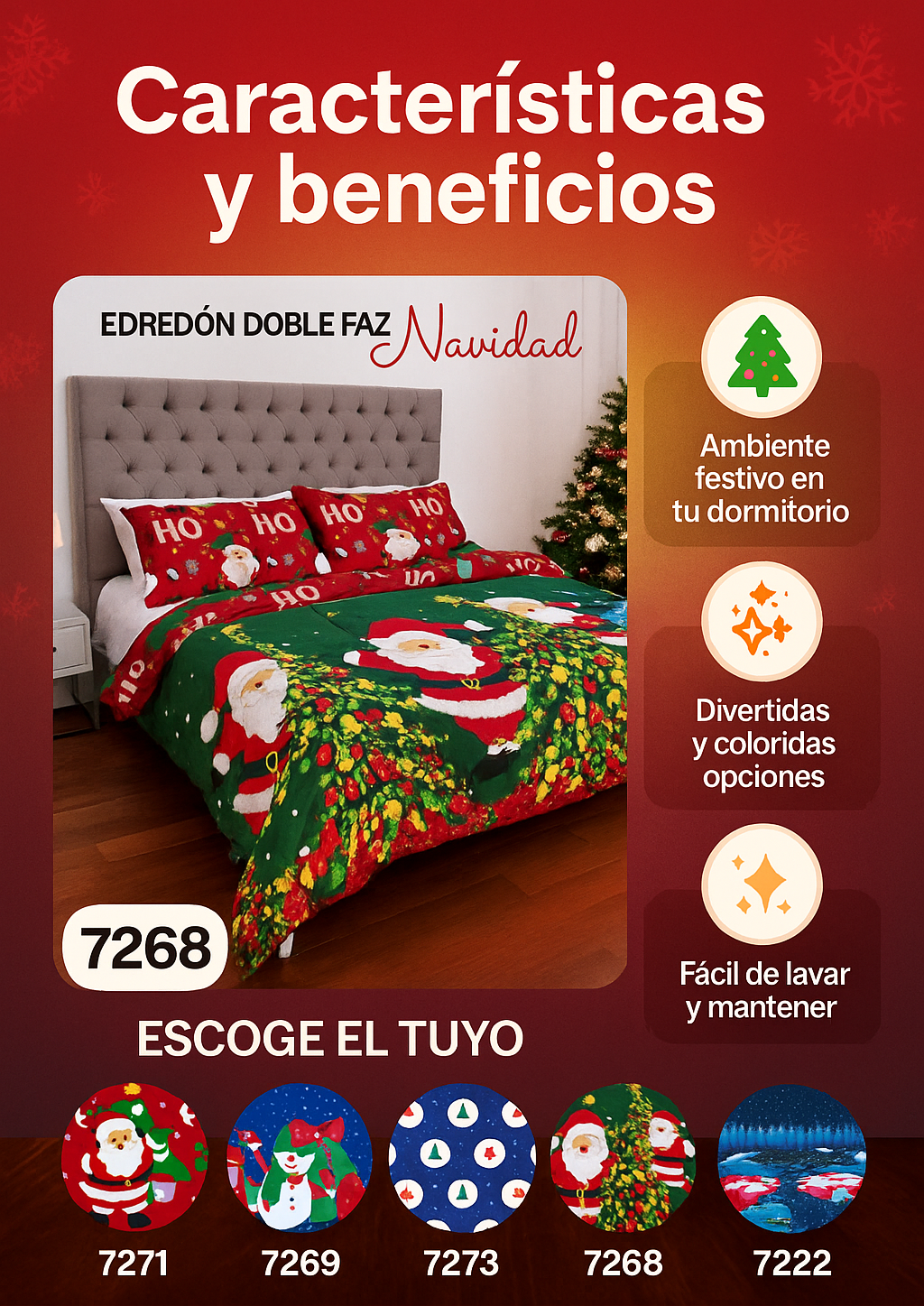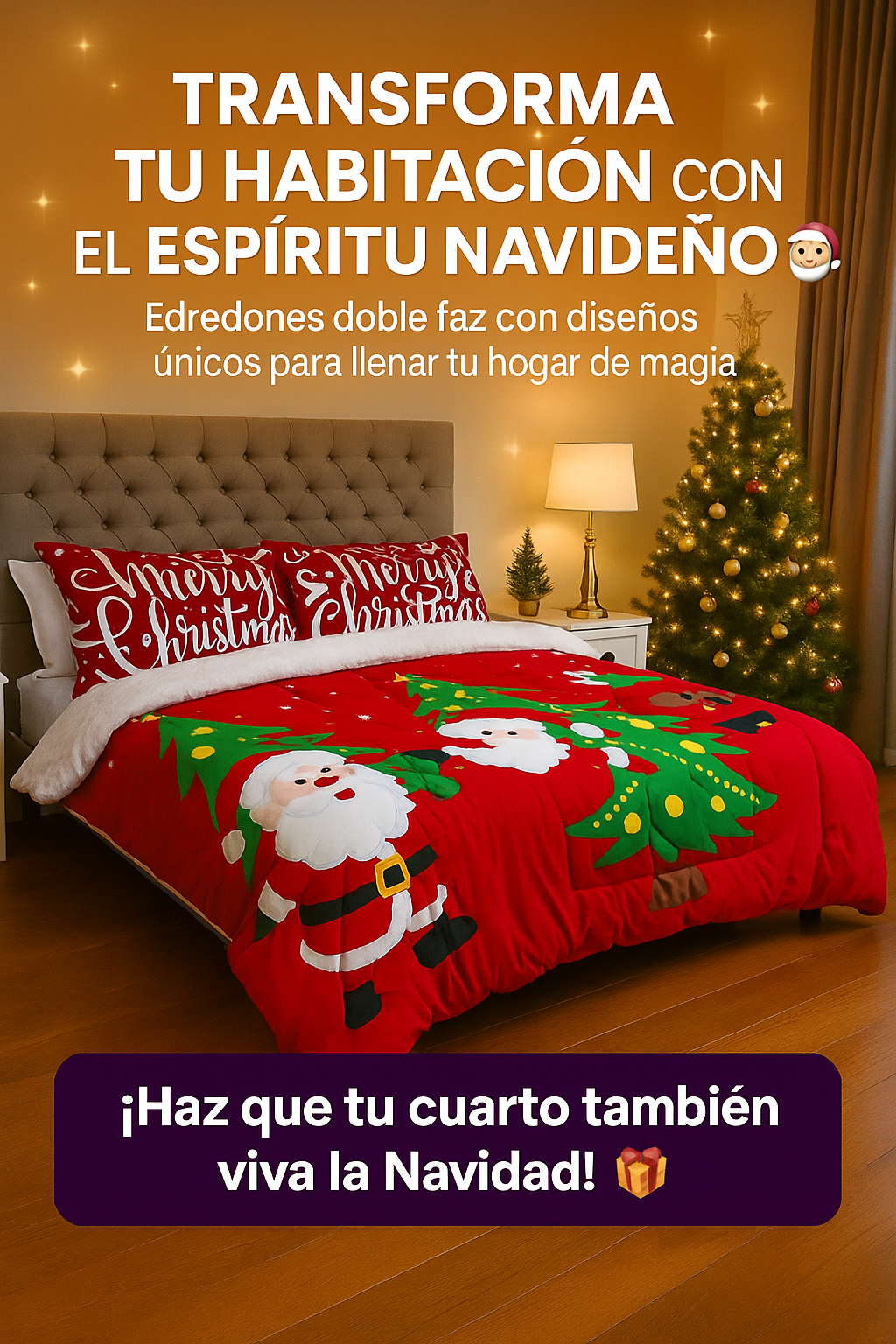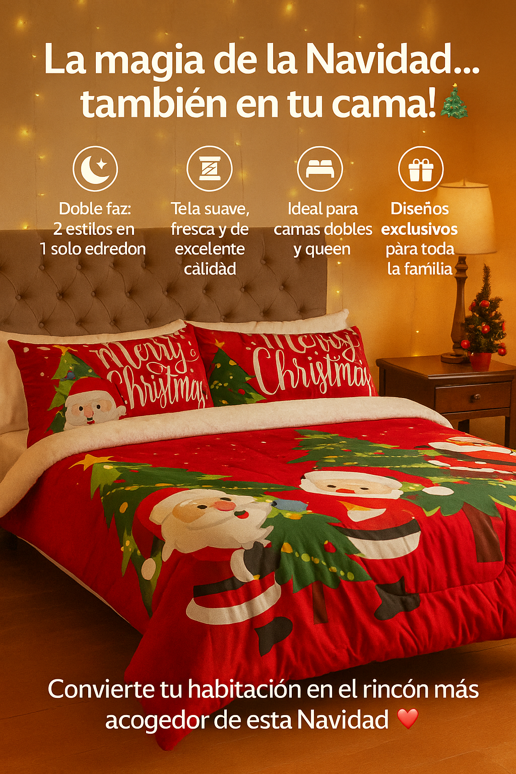 Es un edredón doble faz para cama doble