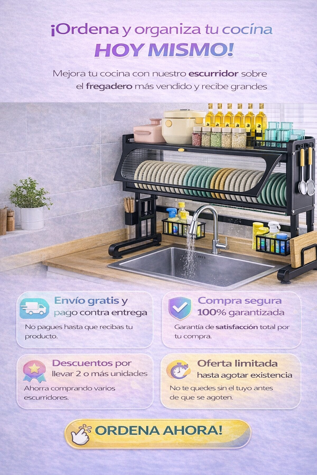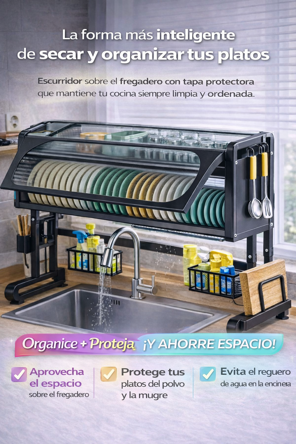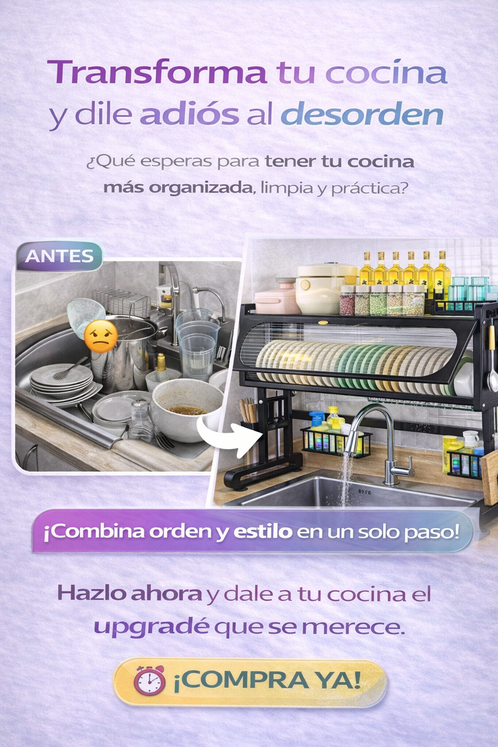 "Ahora mi cocina se ve ordenada y limpia, ¡adiós a los platos amontonados!"