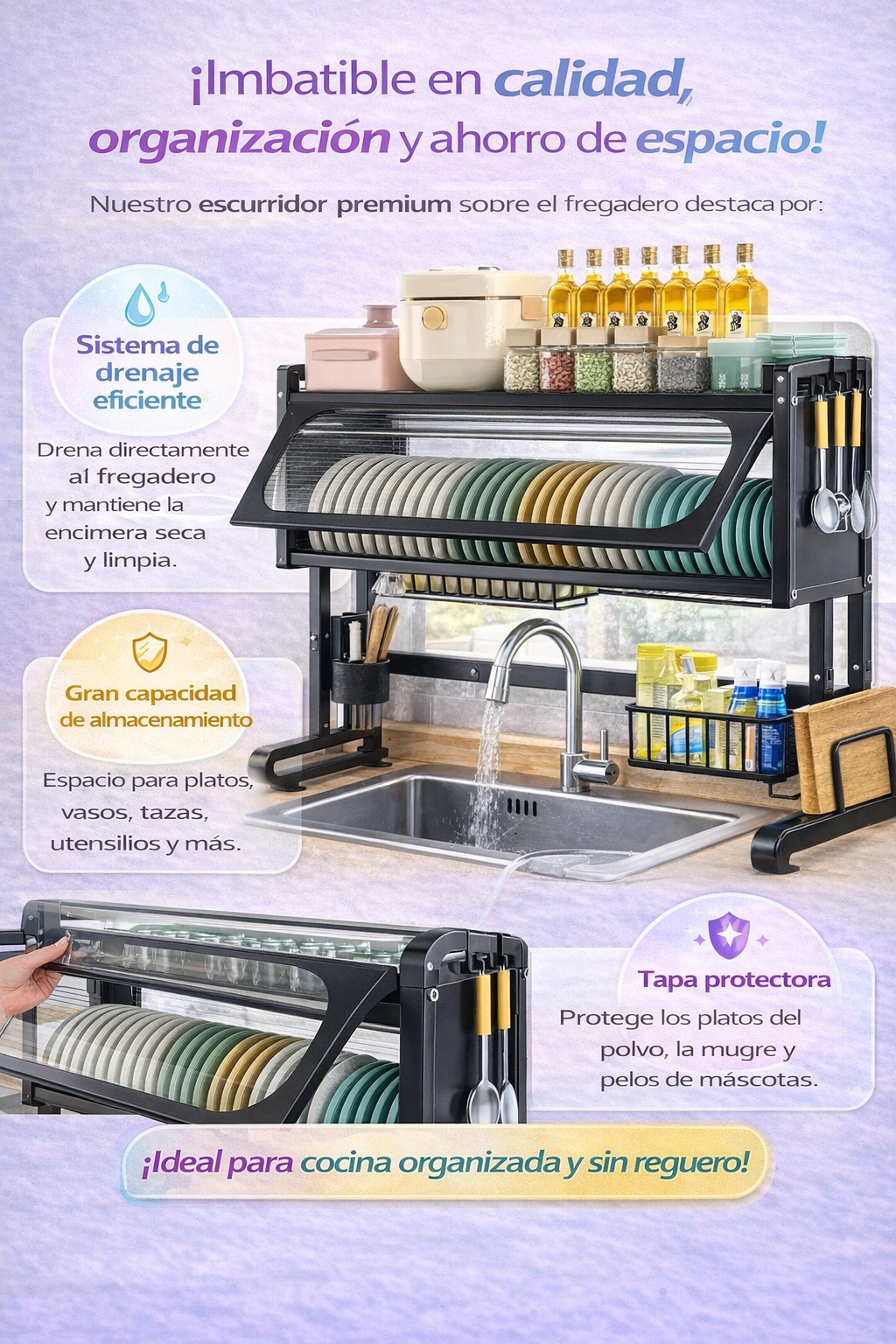 Organizador Con Tapa Escurridor Platos