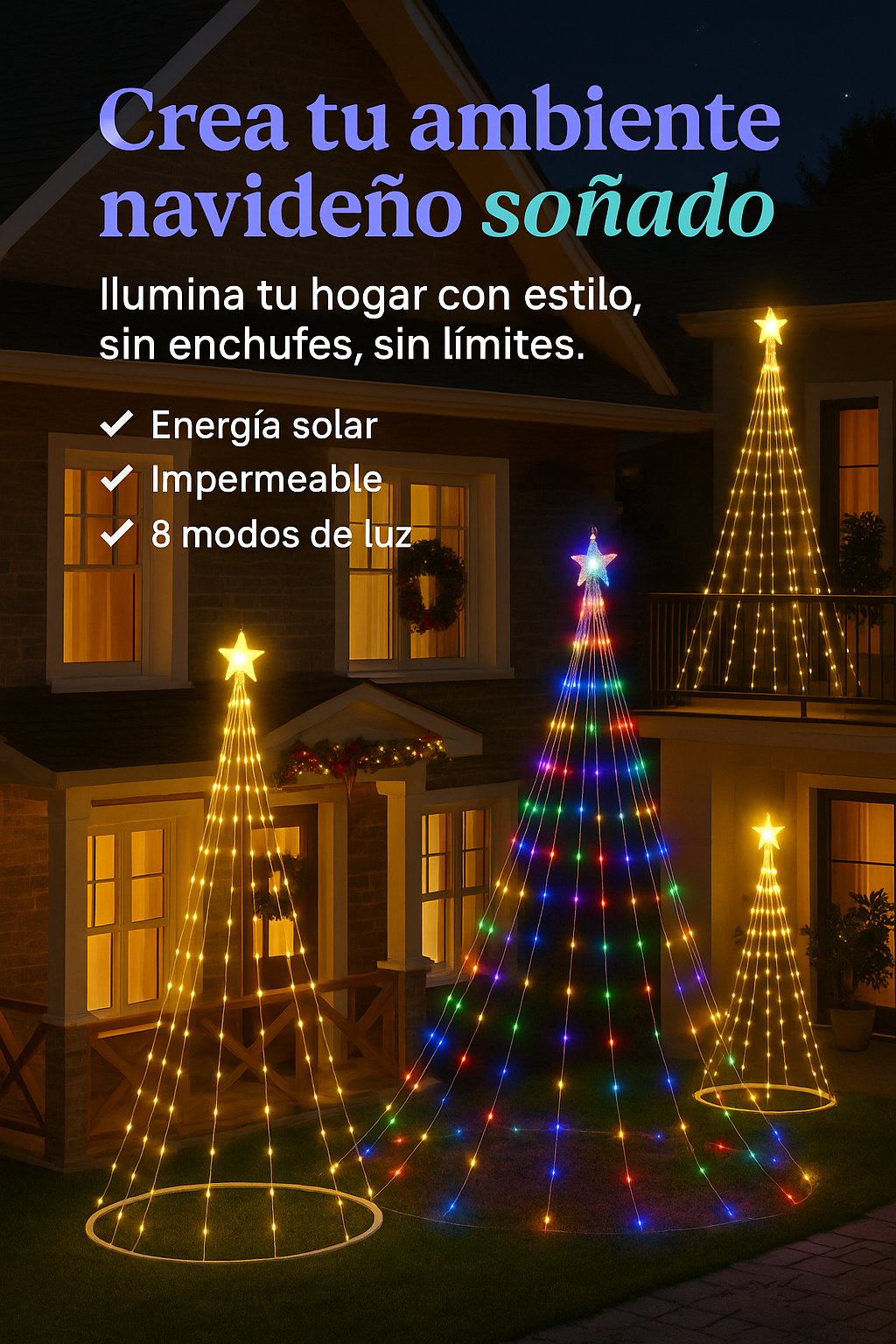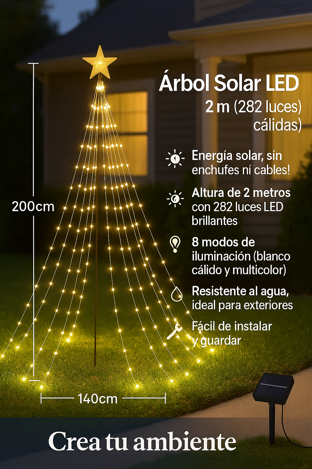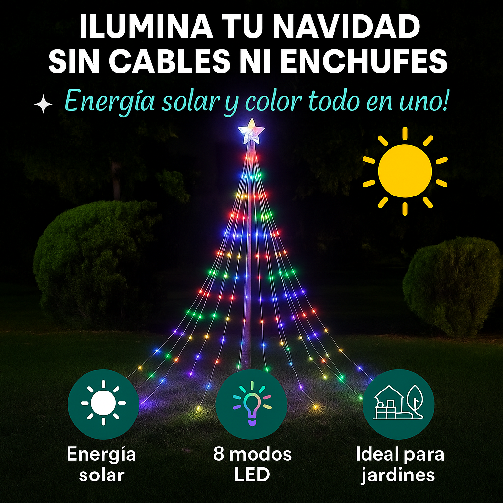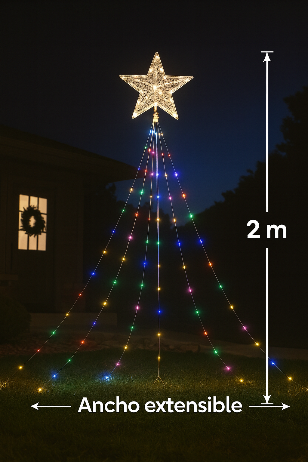 🎄2M (DOS METROS DE ALTO) MULTICOLOR, CÁLIDO Y BLANCO (CON PANEL SOLAR) ☀️ ✨