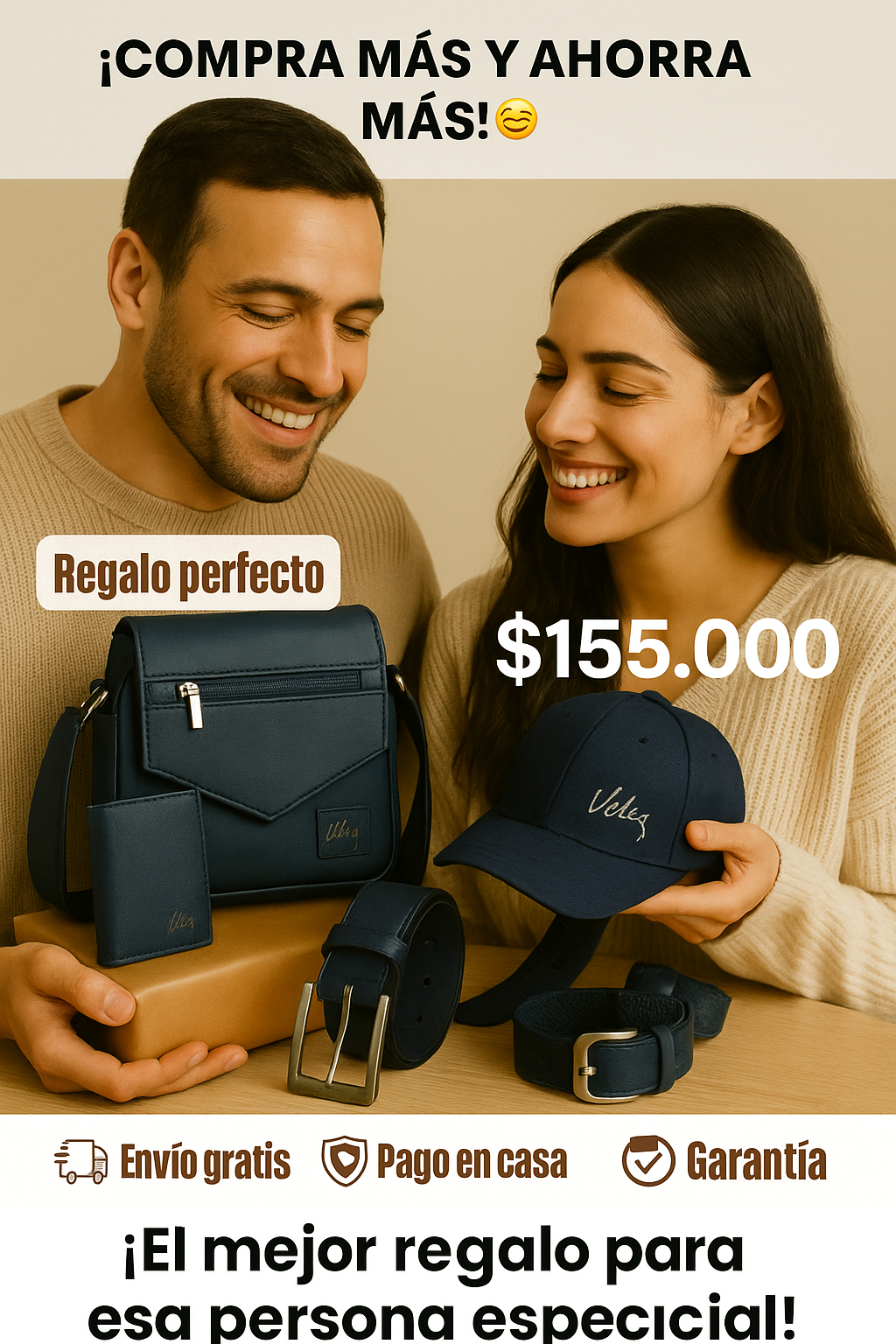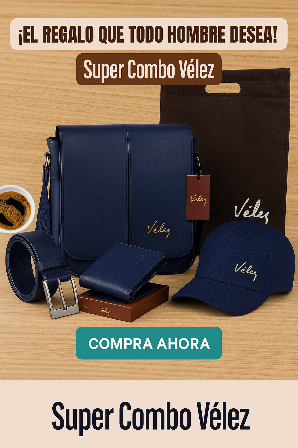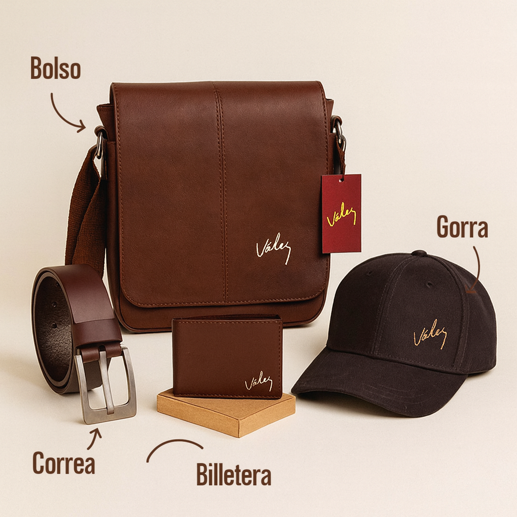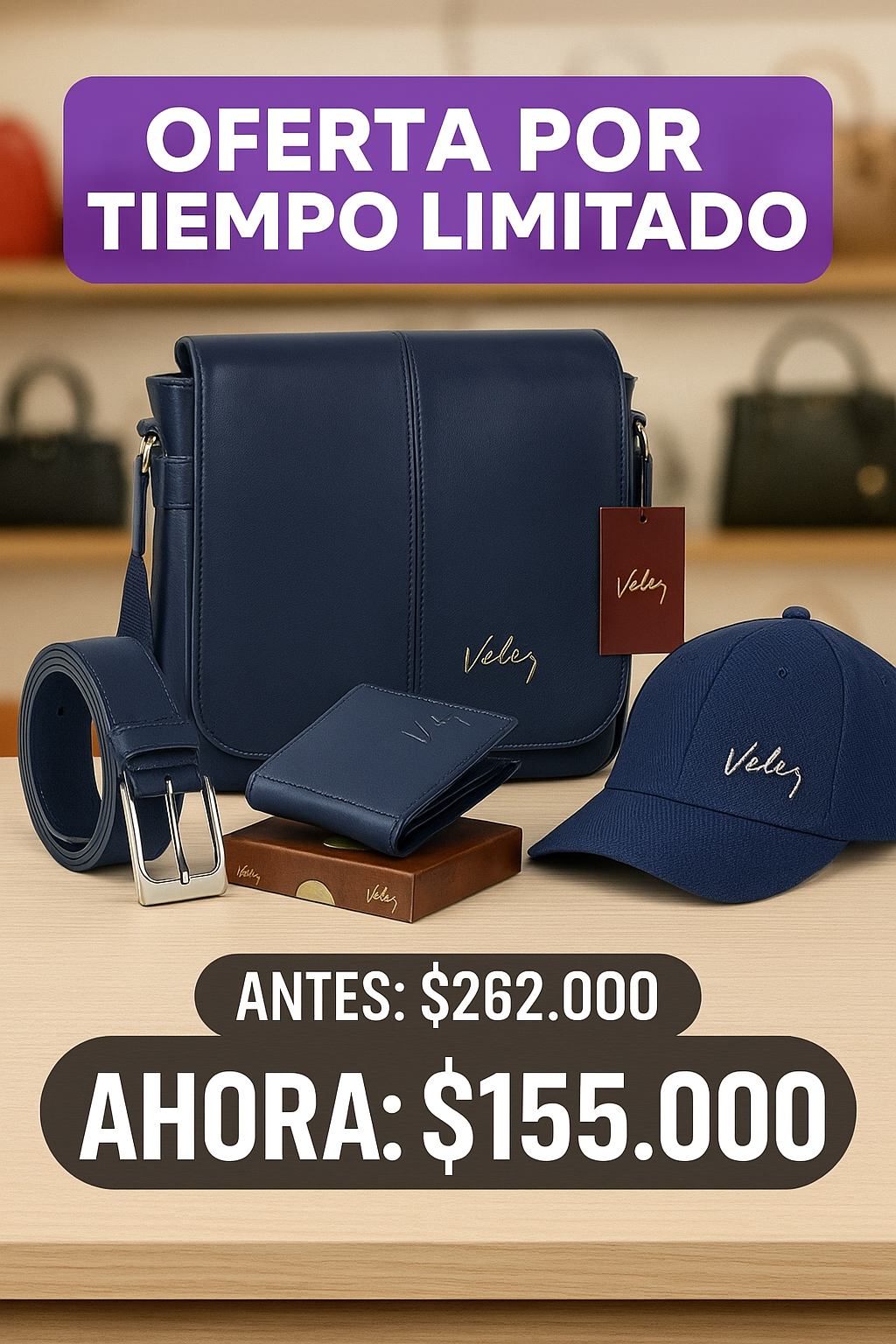 EL COMBO VELEZ QUE TODO HOMBRE NECESITA, TE INCLUYE: (1.BOLSO TAPA LARGA, 2. BILLETERA, 3. CORREA Y COMO OBSEQUIO OBTÉN UNA MARAVILLOSA 4.GORRA VÉLEZ.🧢👜