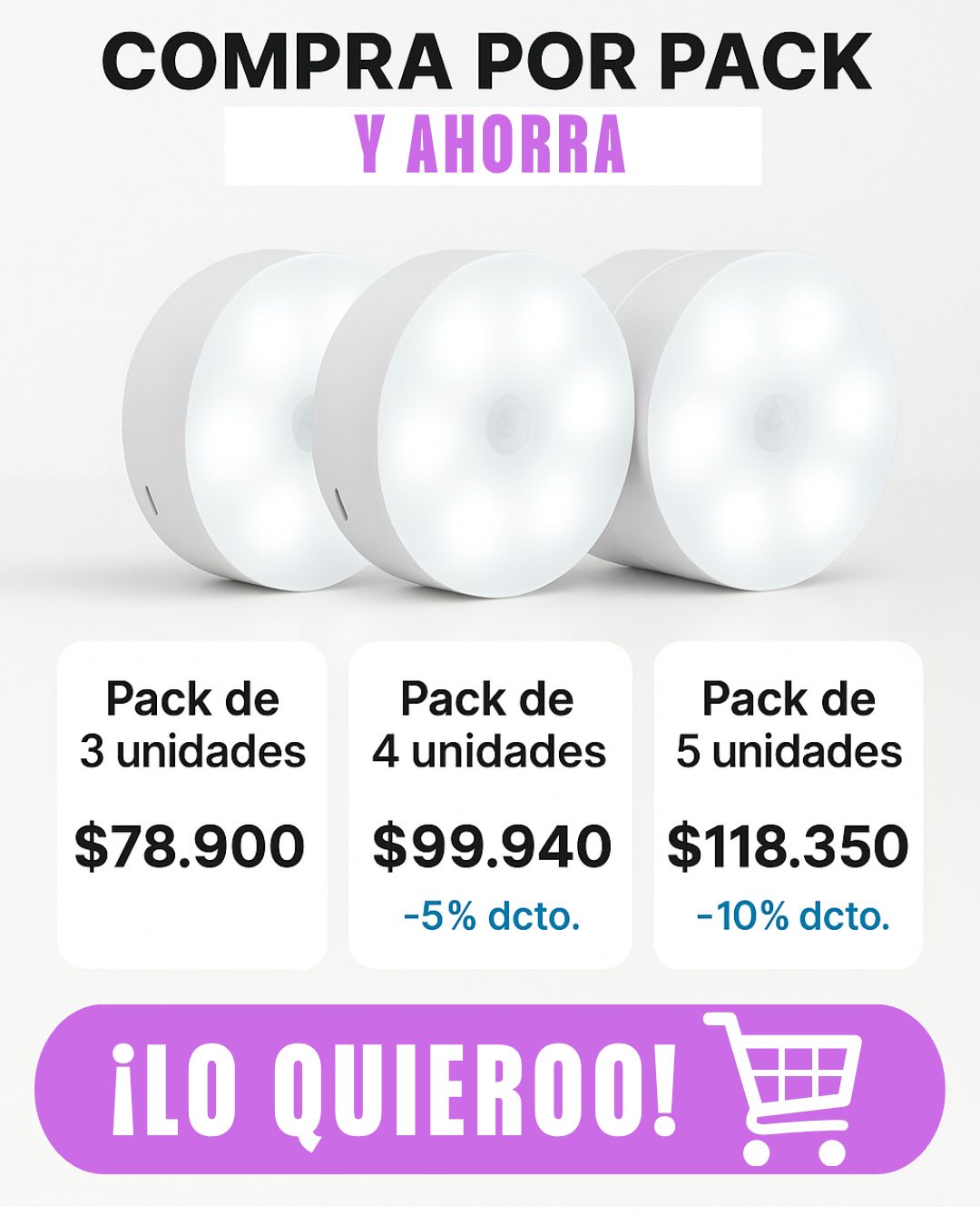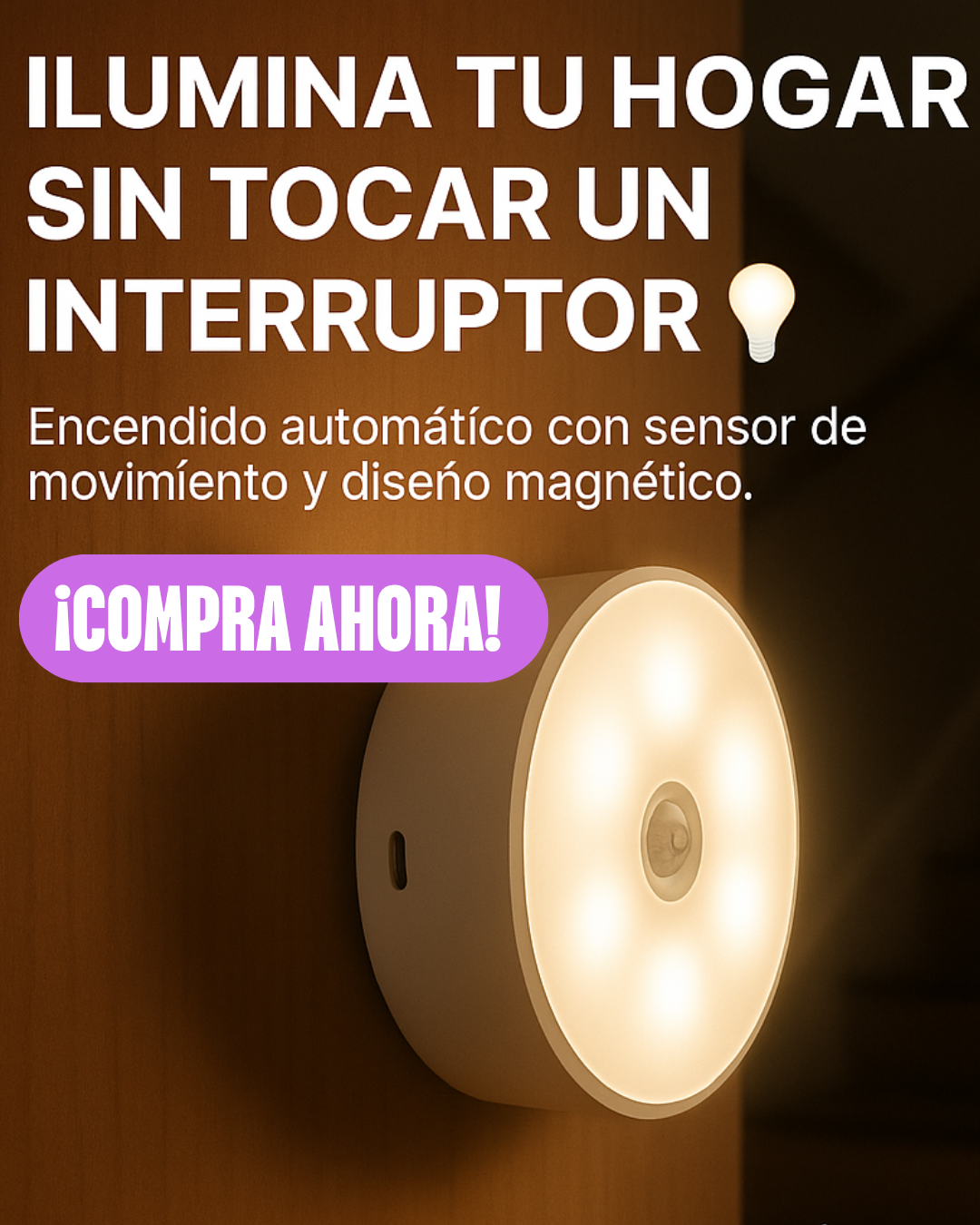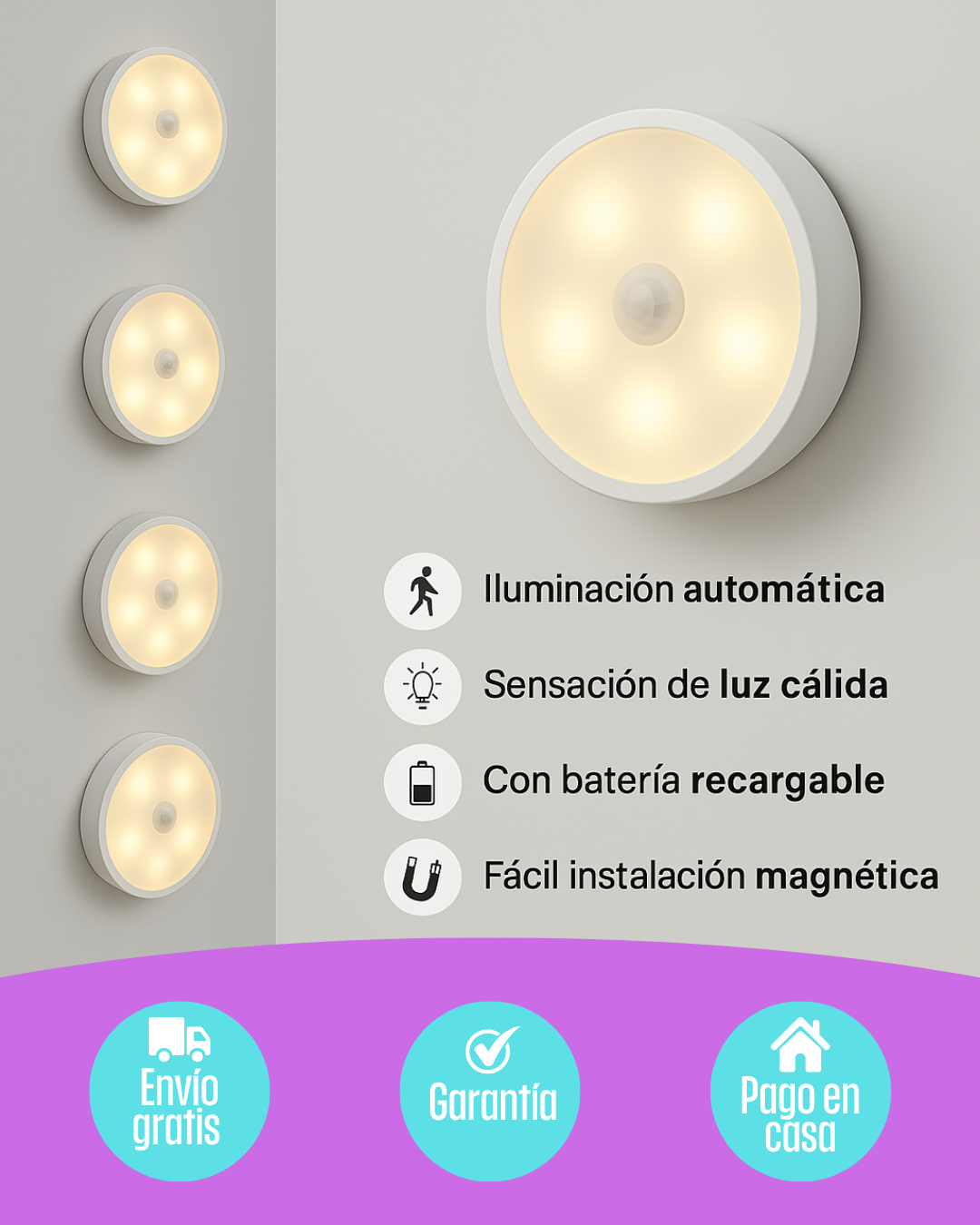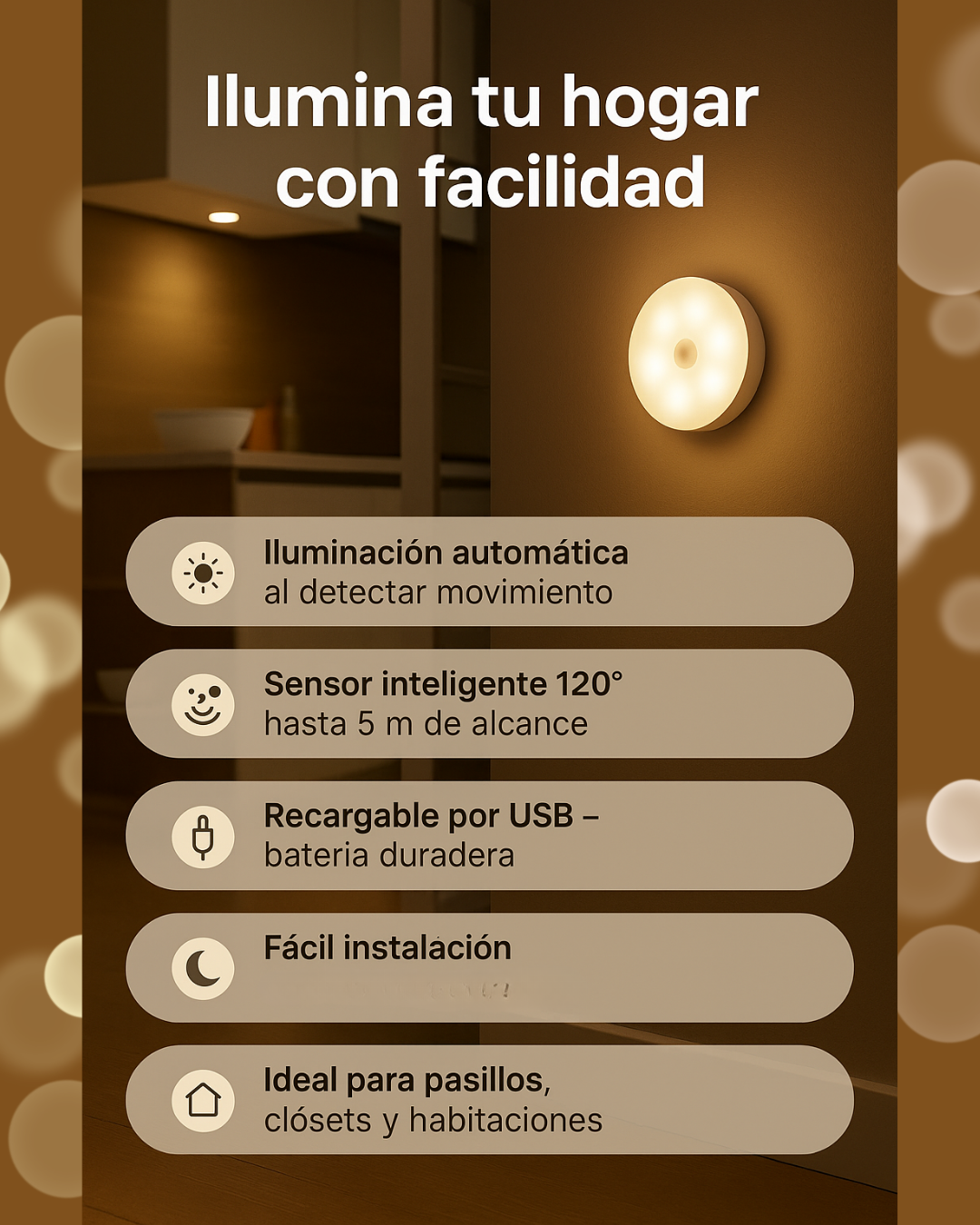Lampara de luz nocturna con sensor de movimiento, cable USB y Cinta doble cara más imán