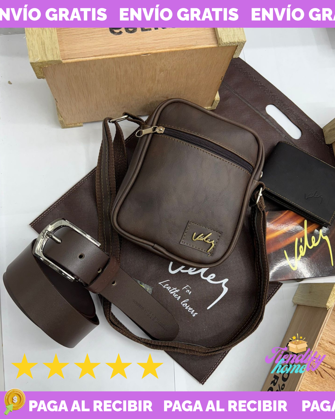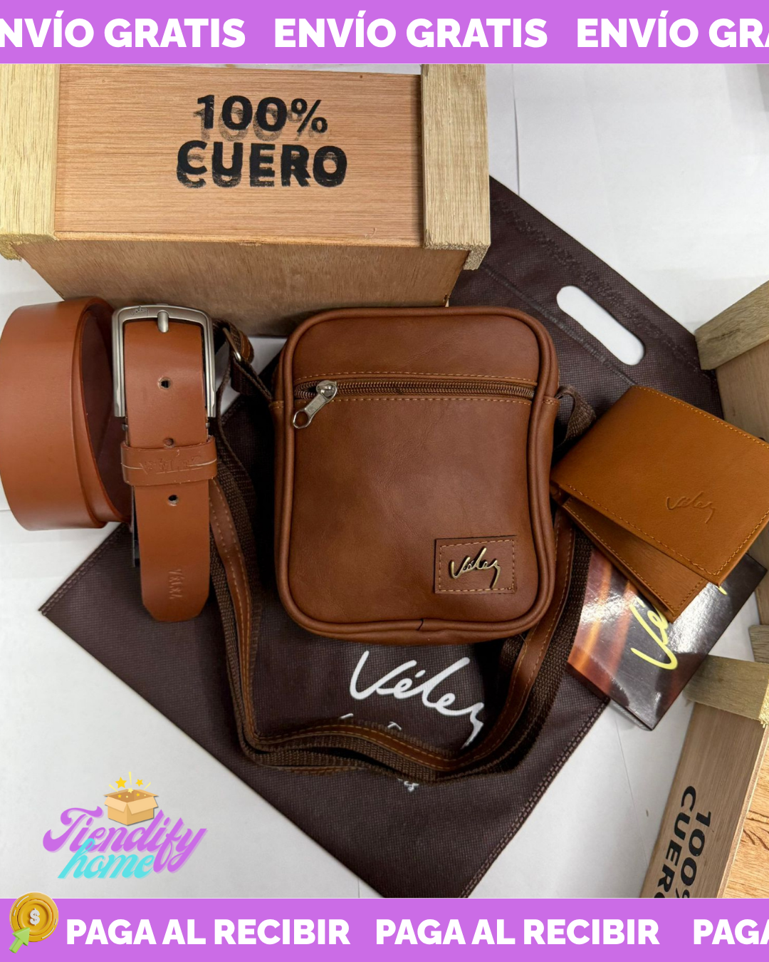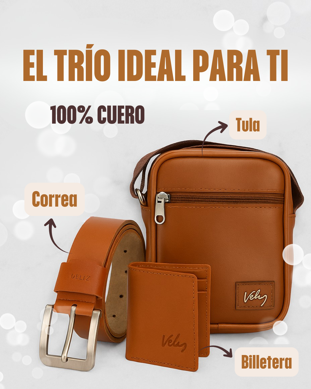 Un súper trío, billetera, bolso y correa