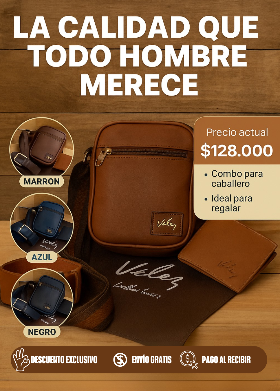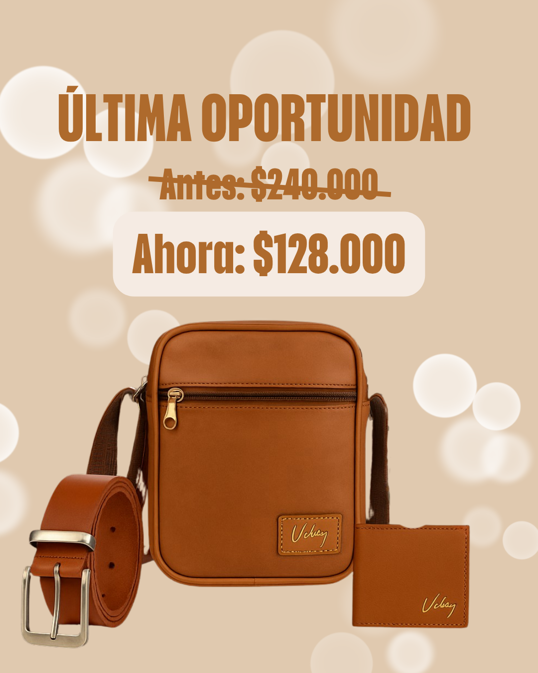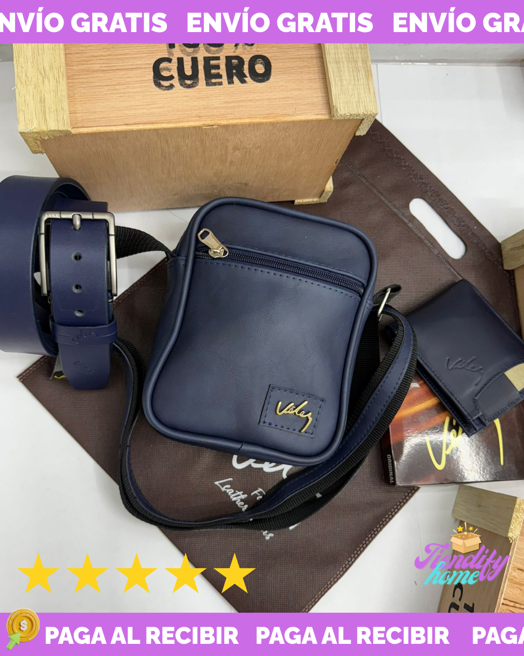 Un súper trío, billetera, bolso y correa